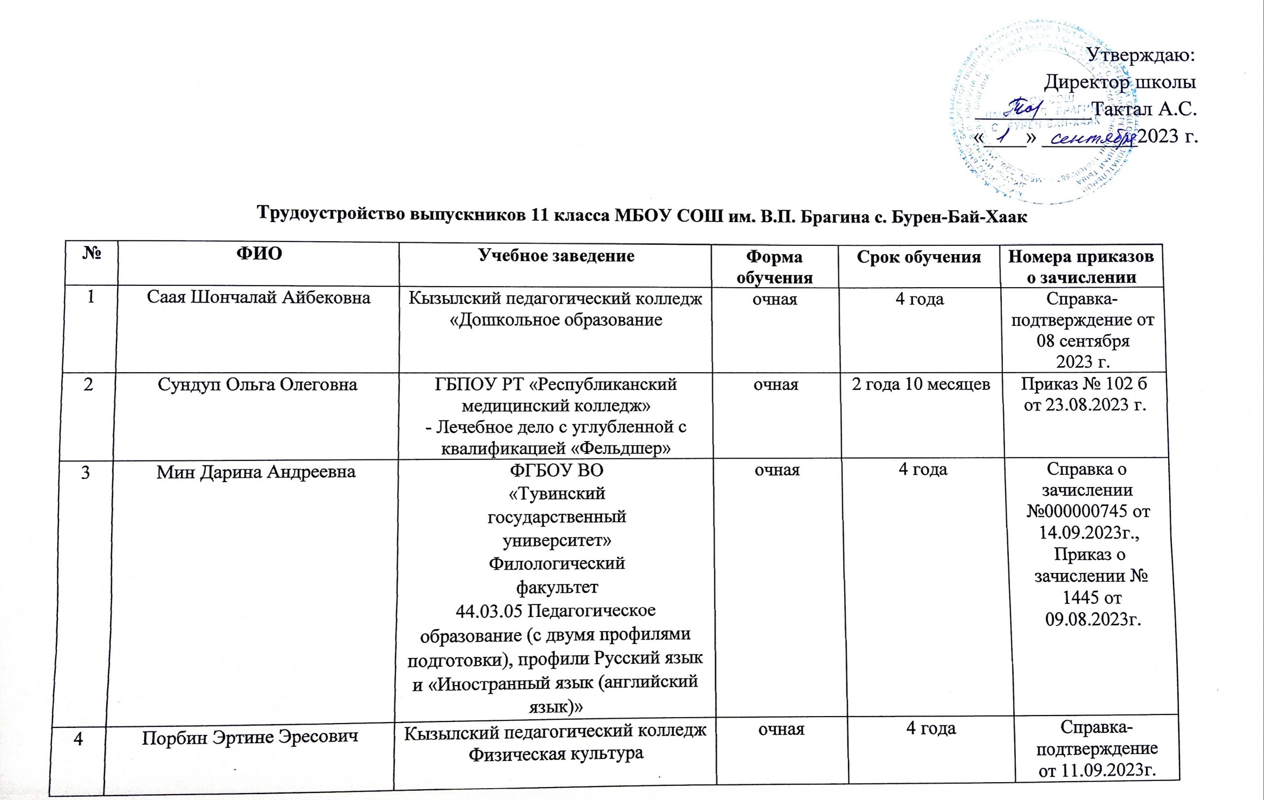 Здание школы (двухэтажное деревянное) — 1963 года постройки, общая площадь 1414 кв. м. В школе есть спортивный зал площадью 128 кв.м, столовая рассчитана на 65 посадочных мест, учебная мастерская с общей площадью 42 кв. м, библиотека с читальным залом. Для осуществления и сопровождения образовательного процесса в МБОУ СОШ имени В. П.Брагина с. Бурен-Бай-Хаак имеется: аудитория учебная 20, в том числе кабинет физики — 1, кабинет информатики — 1.
